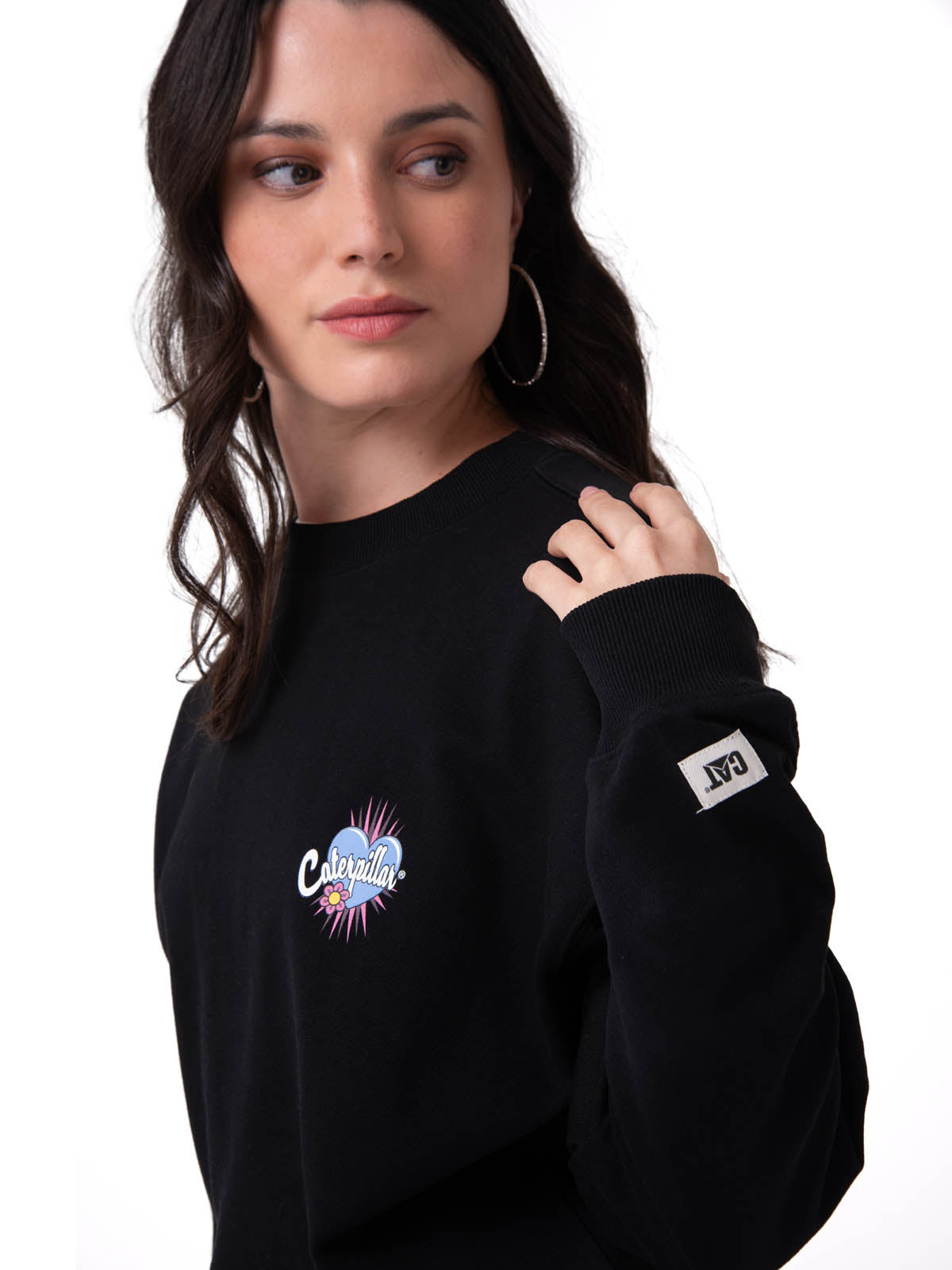 Polerón Crewneck Mujer Diseño French Terry Negro Cat