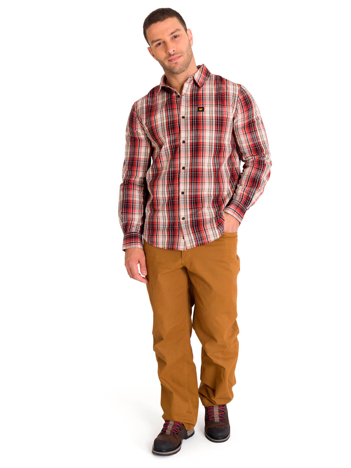 Camisa Manga Larga Casual Hombre Plaid Poplin Rojo CAT