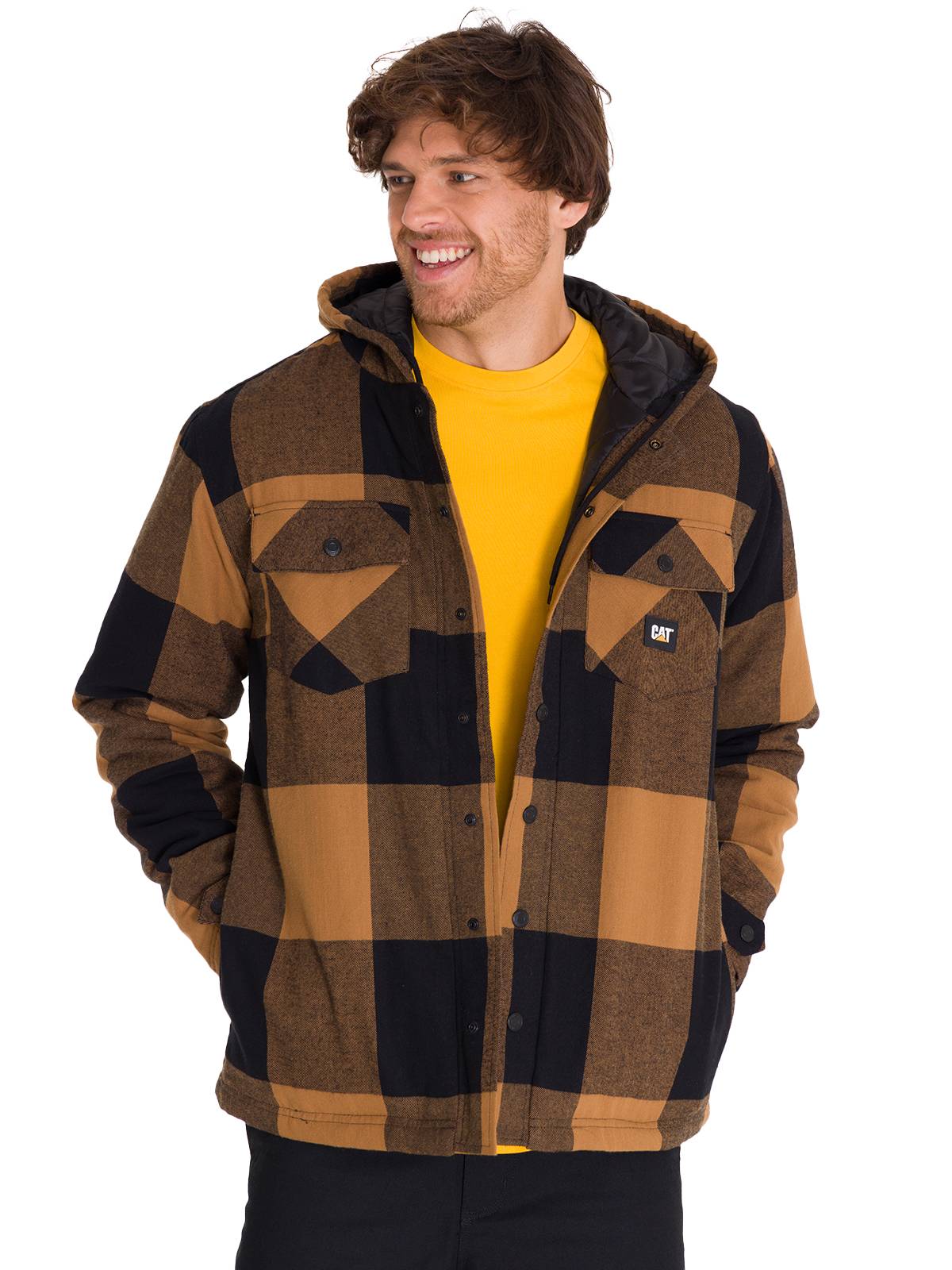 Chaqueta Hombre Hooded Flannel Negro y Café Cat