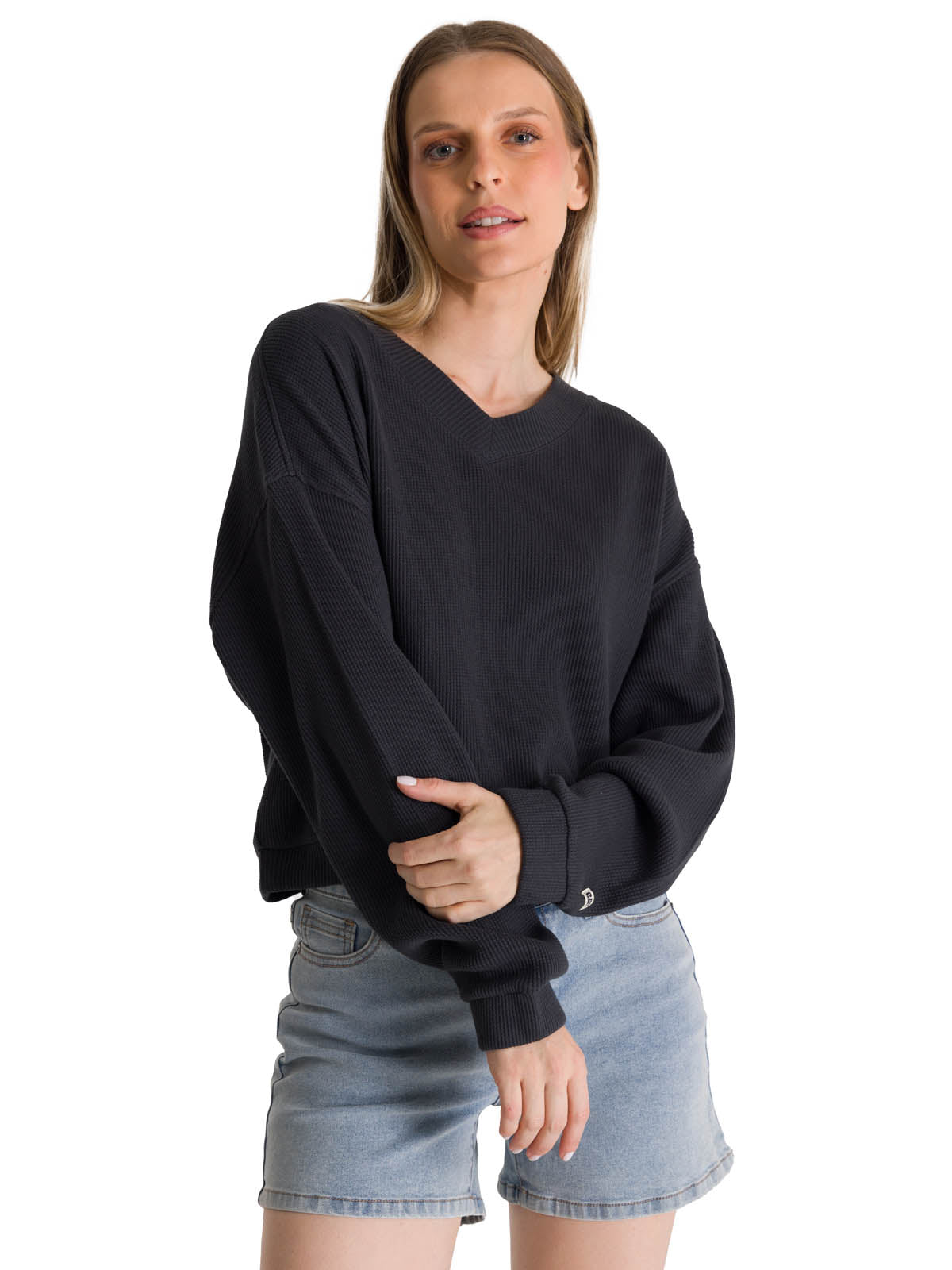 Polerón Cuello en V Mujer Oversize Waffle Grafito CAT
