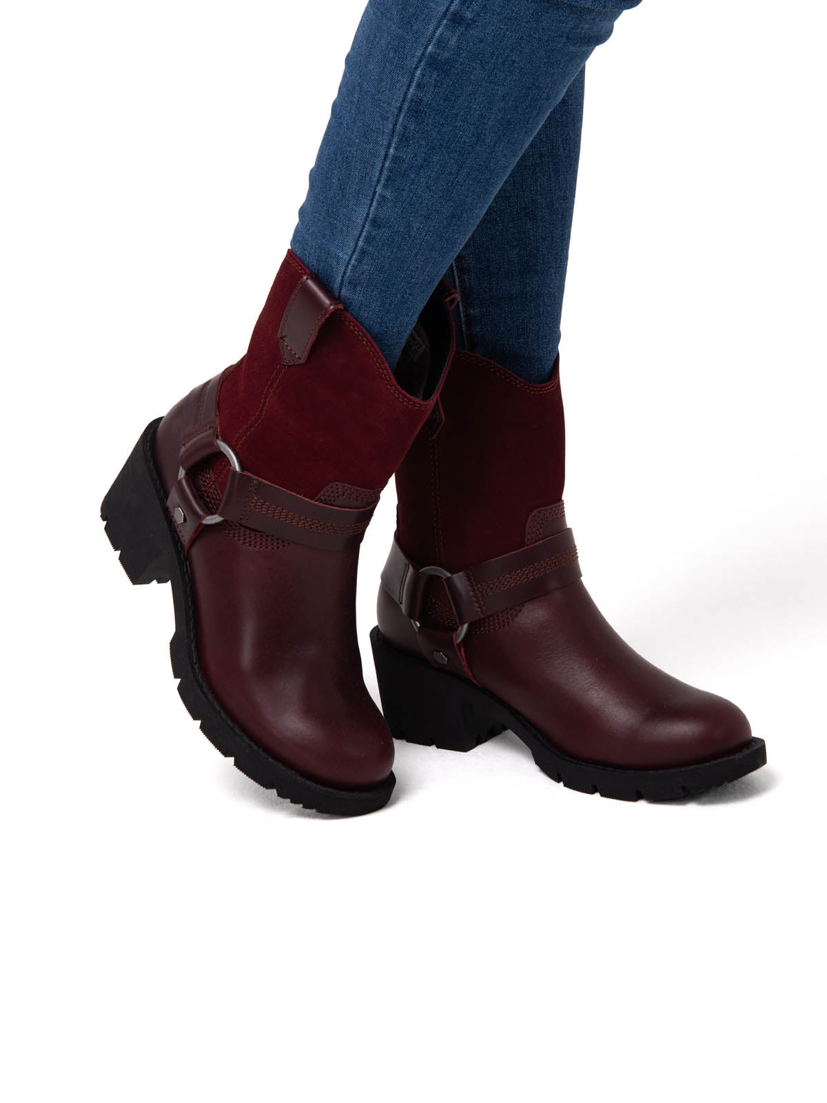 Botín Cuero Rewrite Harness Burdeo Cat