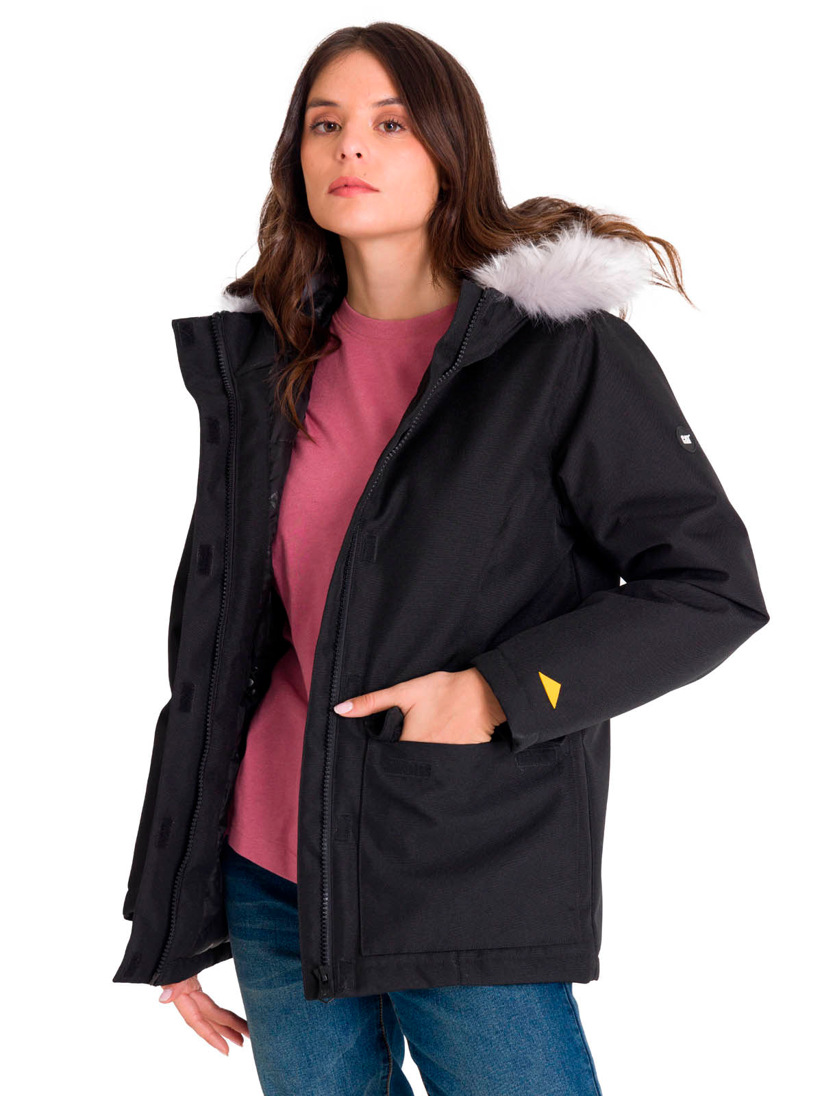- Forro con el logotipo de Caterpillar impreso y un bolsillo interior en el pecho