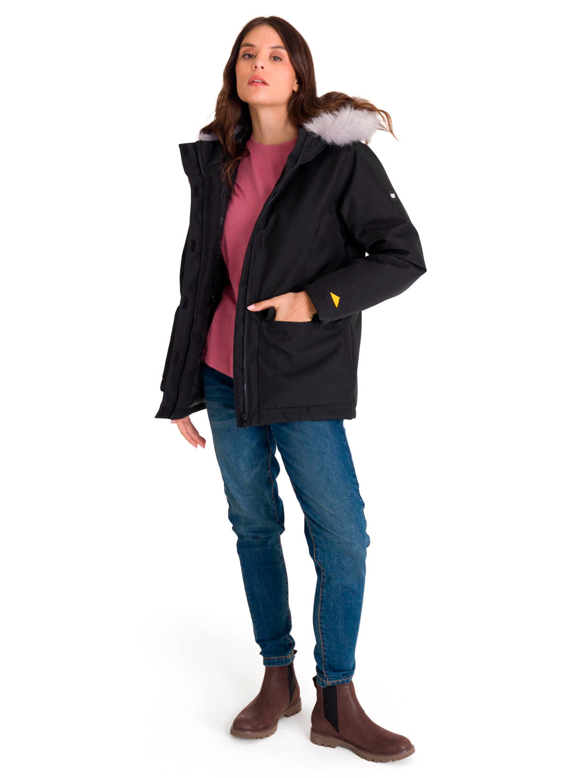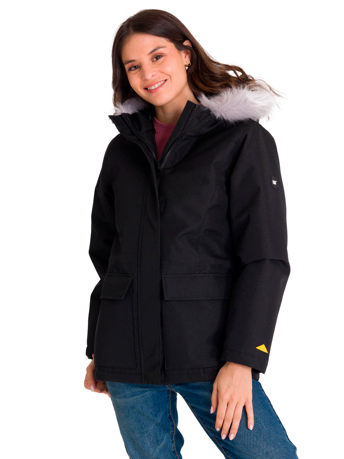 Chaqueta Manga Larga Casual Mujer MEDIUMWEIGHT INSULATED FAUX FUR HOODED Negra Cat