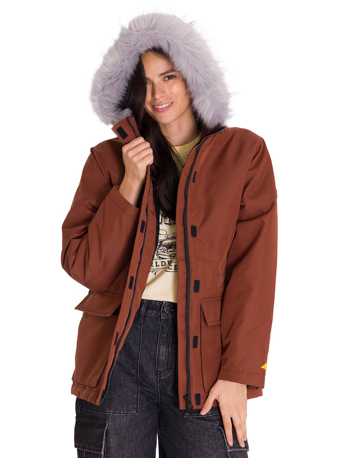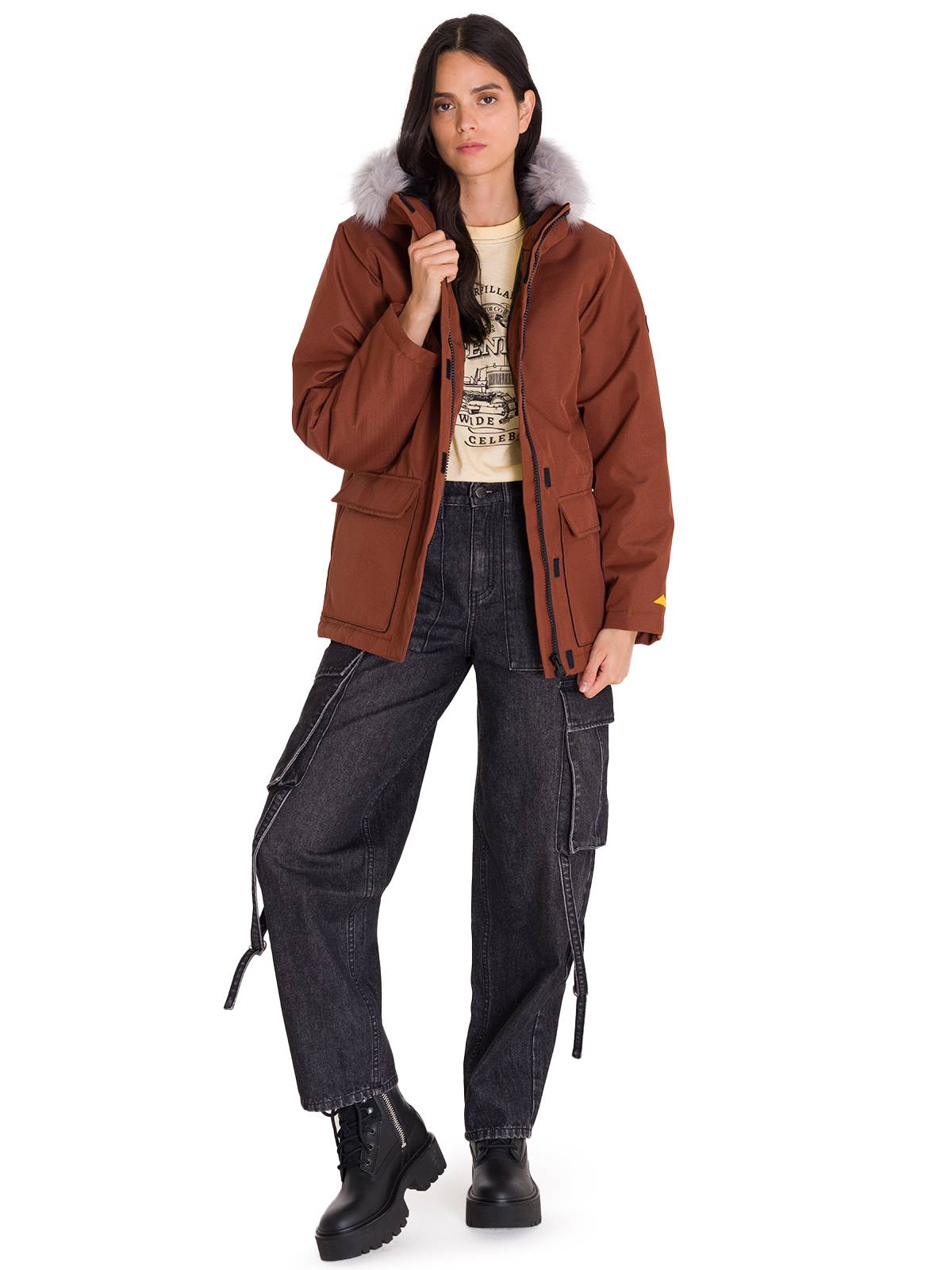 Chaqueta Manga Larga Casual Mujer MEDIUMWEIGHT INSULATED FAUX FUR HOODED Terracota Cat
