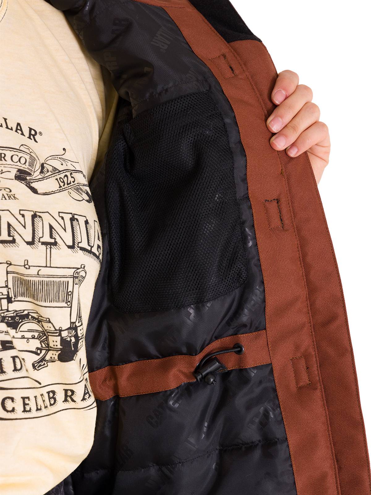 - Forro con el logotipo de Caterpillar impreso y un bolsillo interior en el pecho