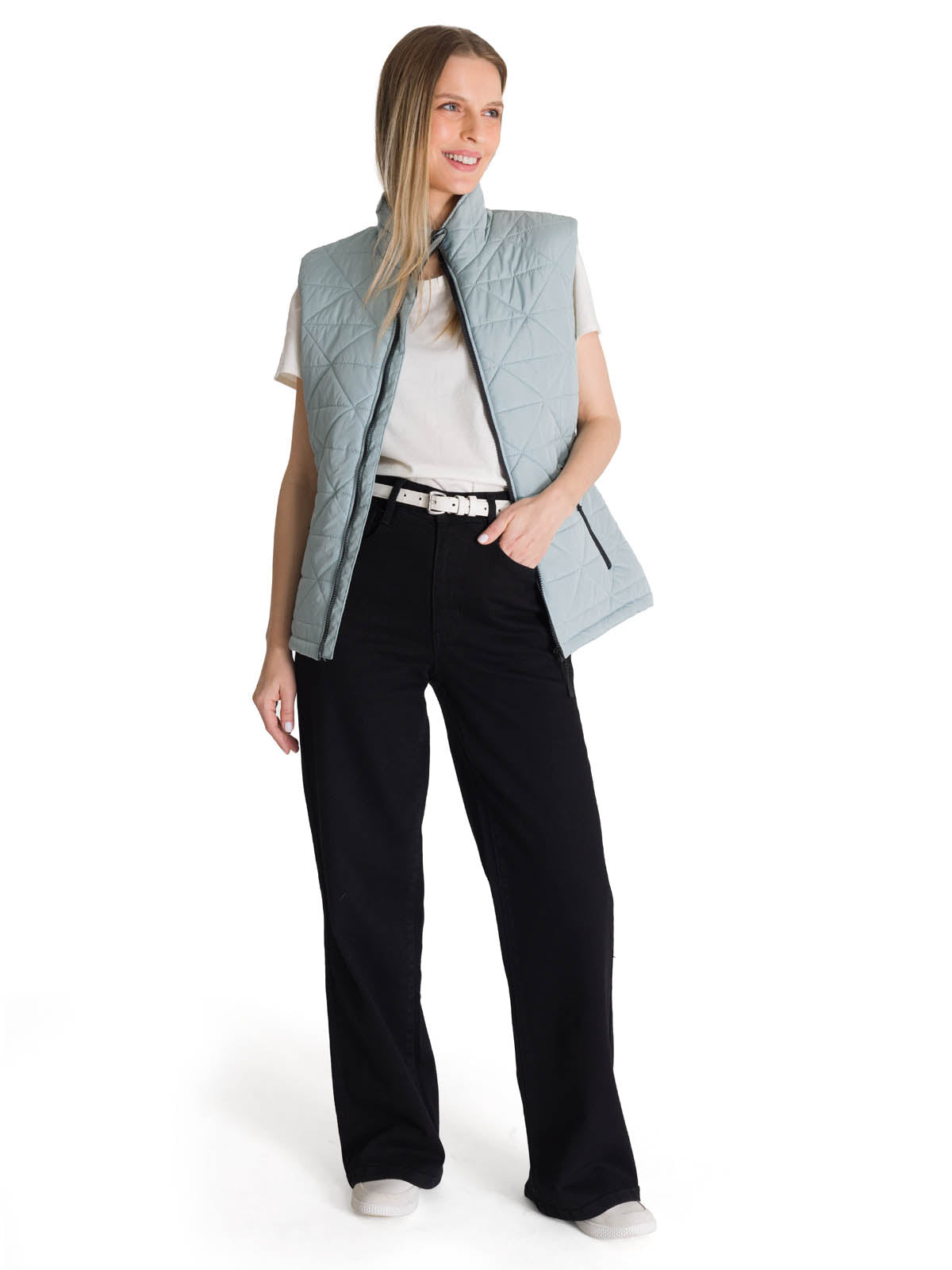Añade una capa de estilo y dimensión a tu look. Este chaleco no solo te brinda una sensación de abrigo, sino que también enriquece tu atuendo con su elegante textura acolchada. Su cuello alto y su corte favorecedor lo convierten en el complemento perfecto para transformar un conjunto simple en uno sofisticado y lleno de interés.