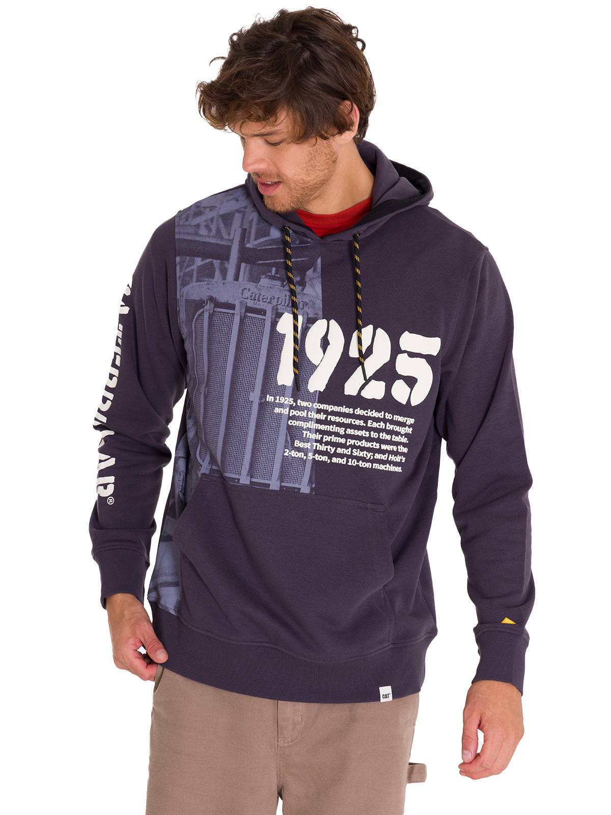 • Etiqueta envolvente con el logotipo de Caterpillar en el dobladillo izquierdo