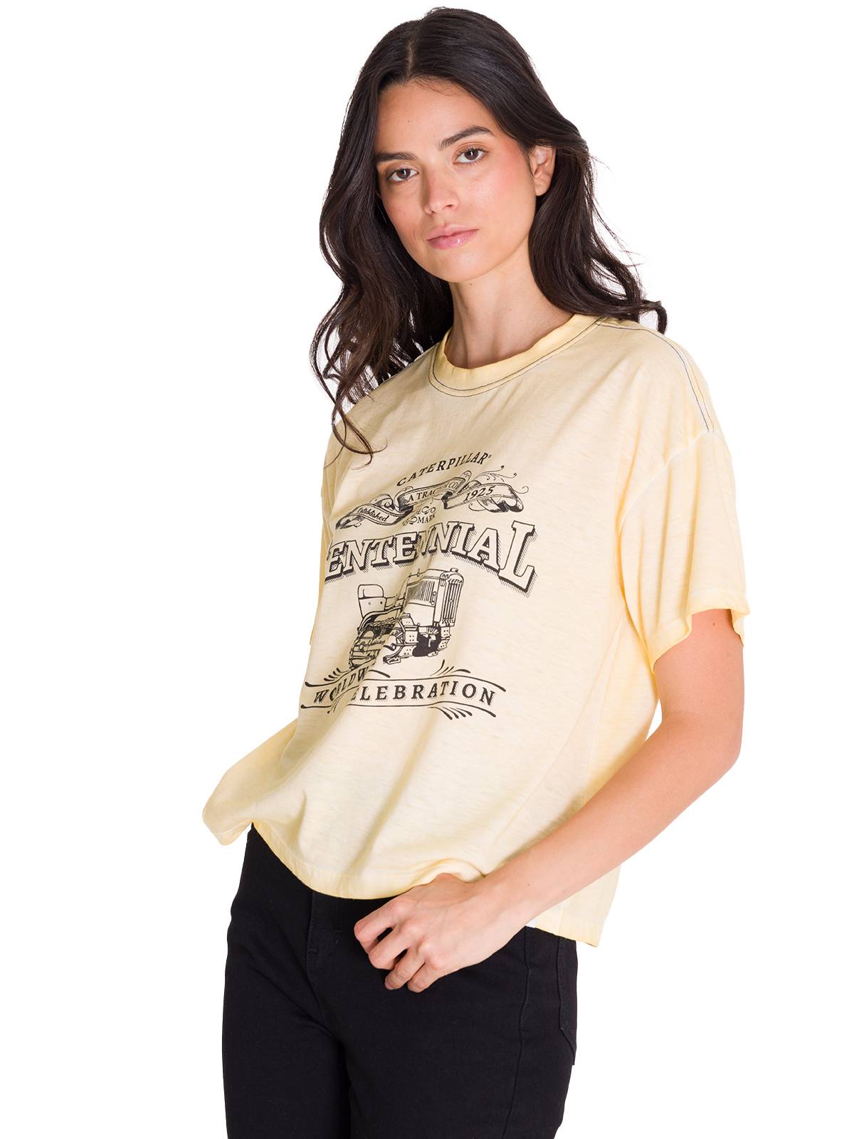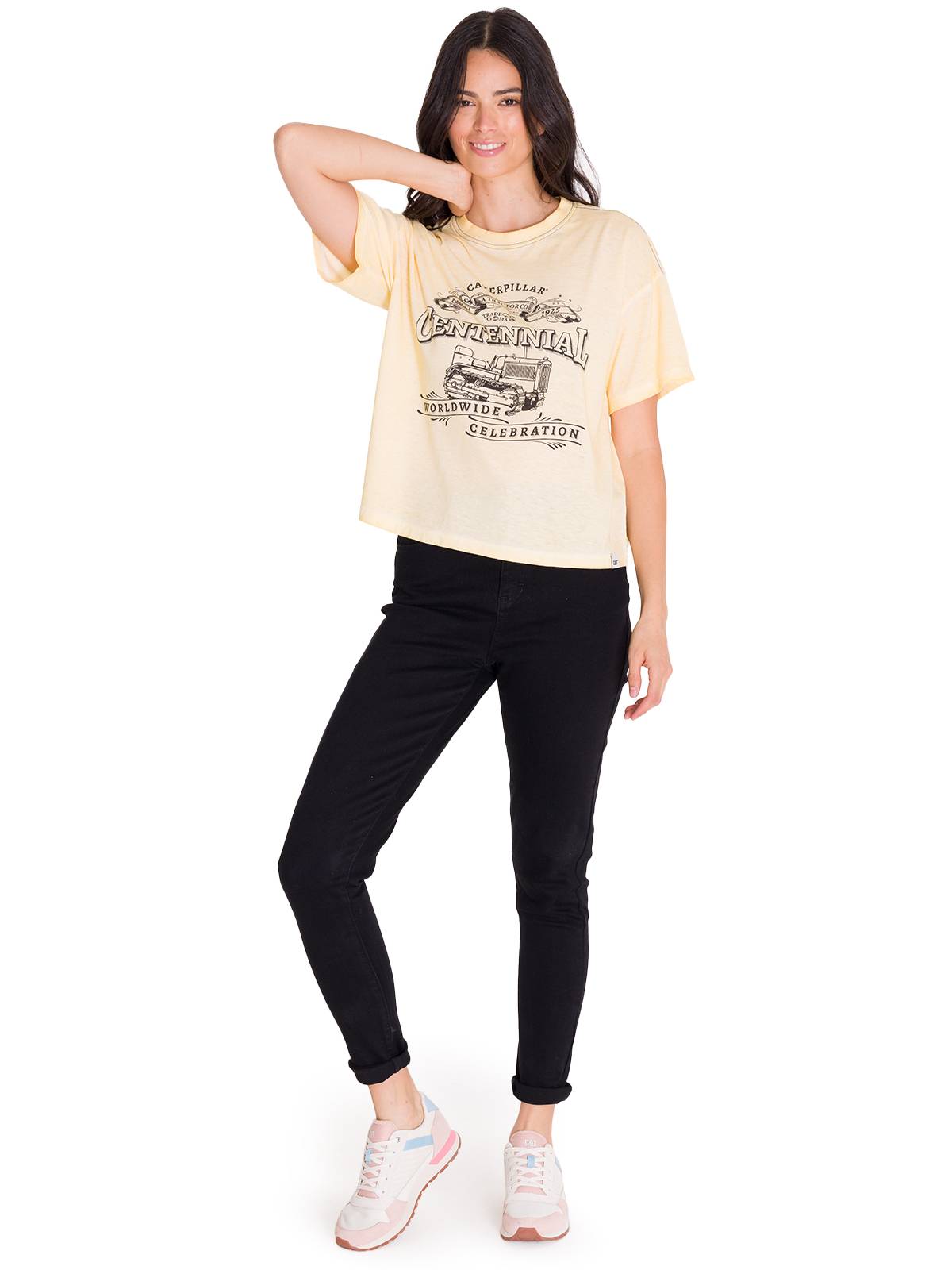 Polera Manga Corta Casual Mujer BOXY CENTENNIAL GRAPHIC TEE Blanca Cat