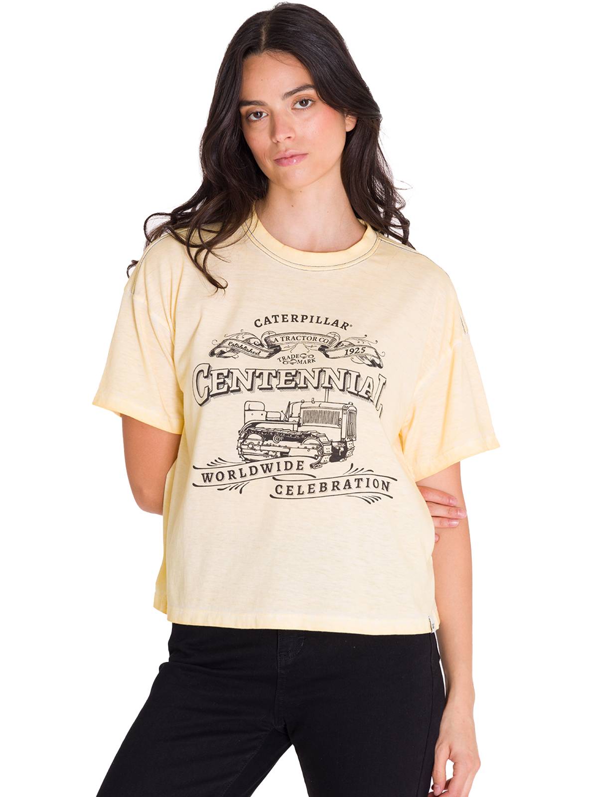 - Etiqueta envolvente con el logotipo de Caterpillar en el dobladillo