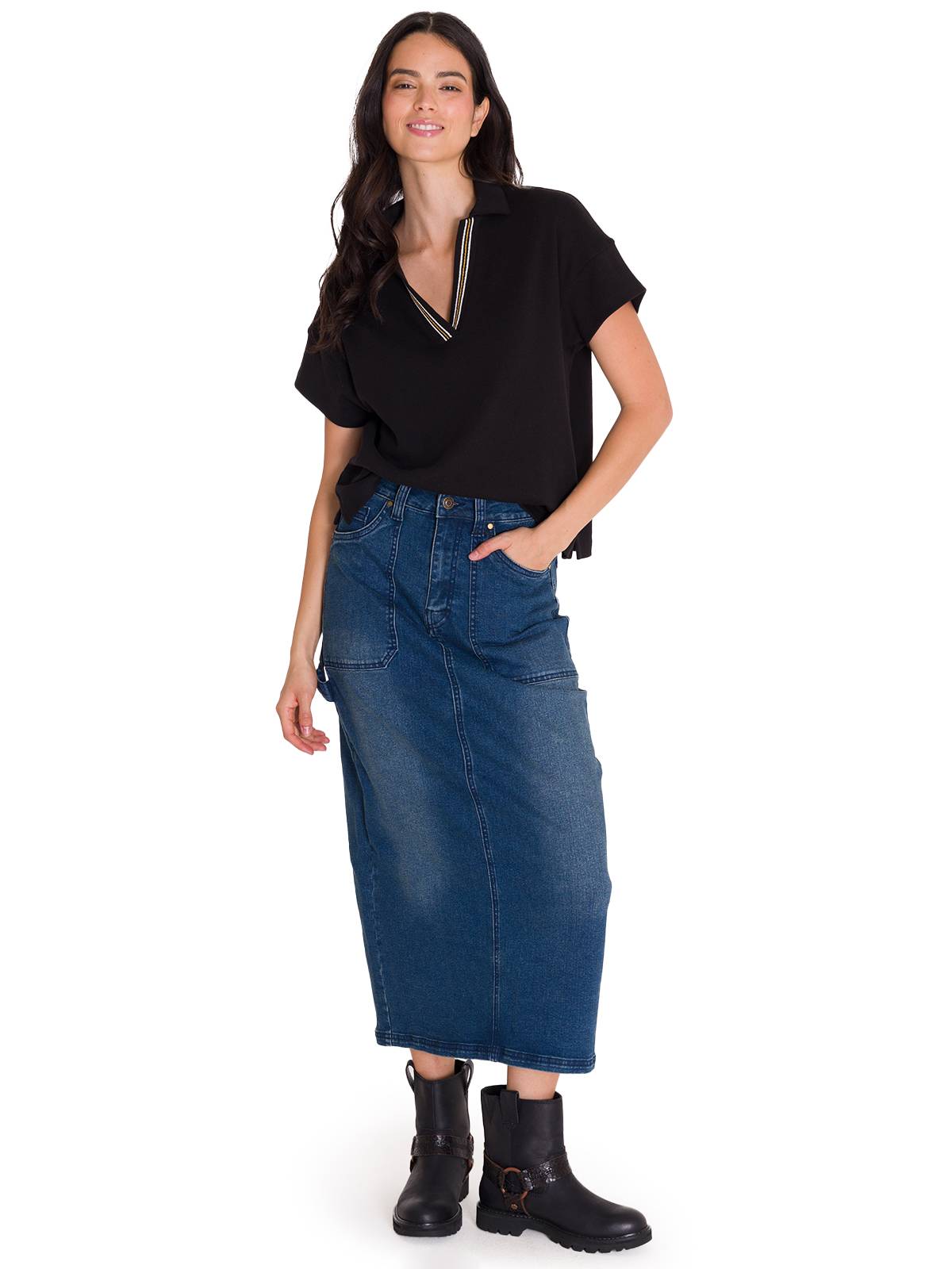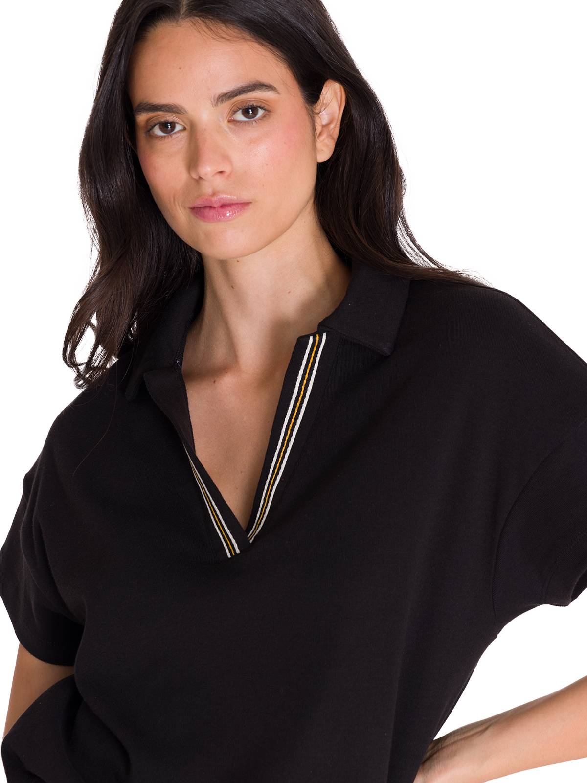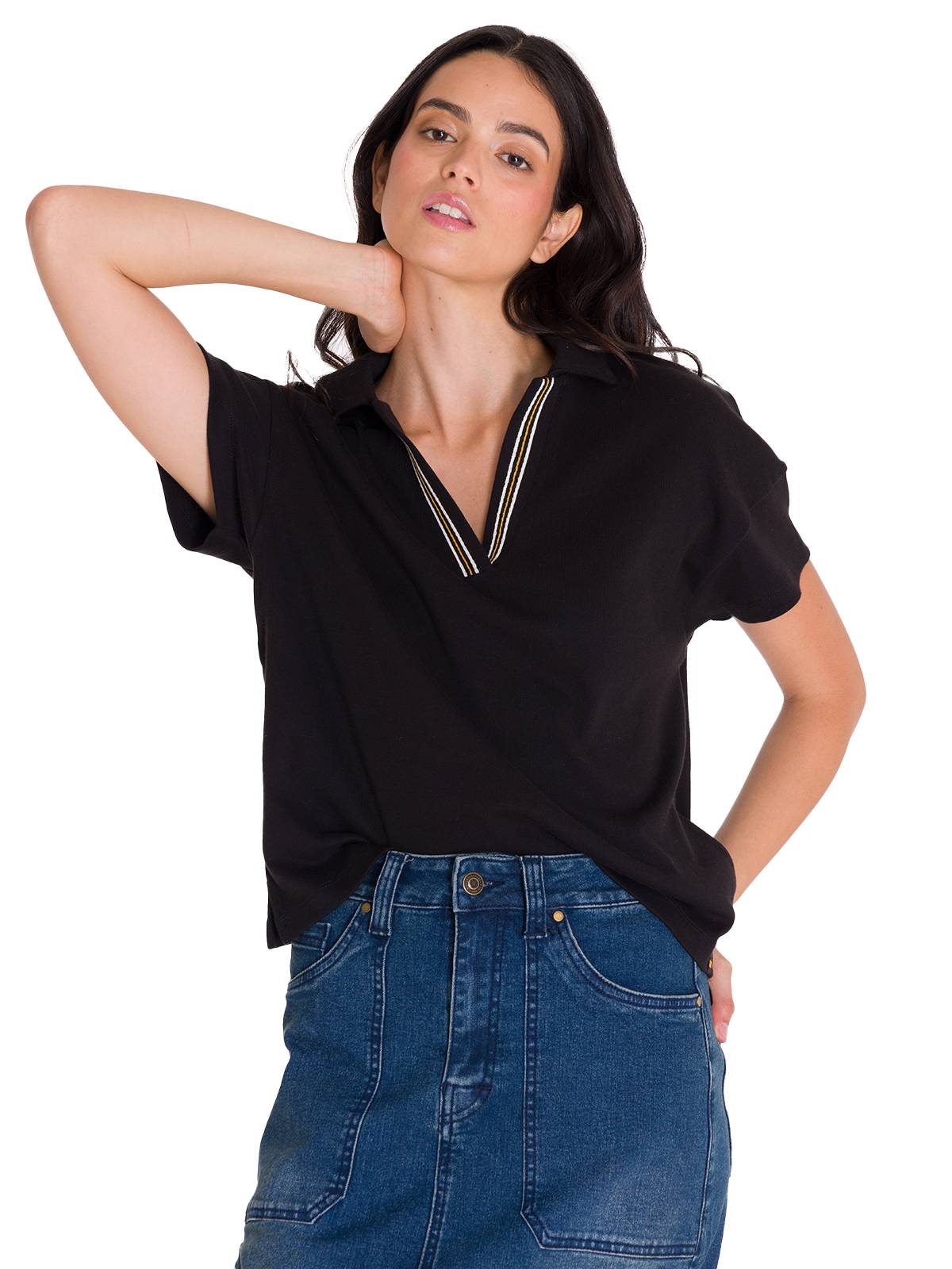 Polera Manga Corta Polo Mujer NOTCH NECK POLO Negra Cat
