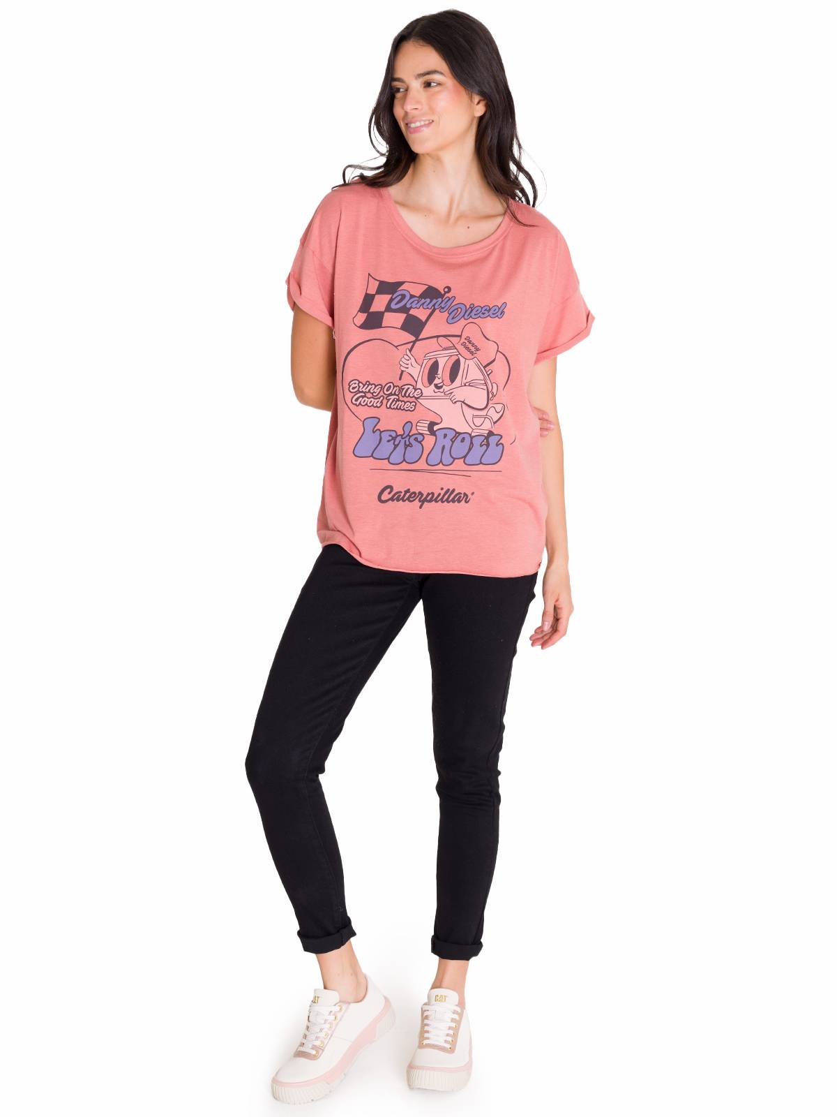 Polera Manga Corta Casual Mujer RELAXED DANNY GRAPHIC TEE Rosada Cat