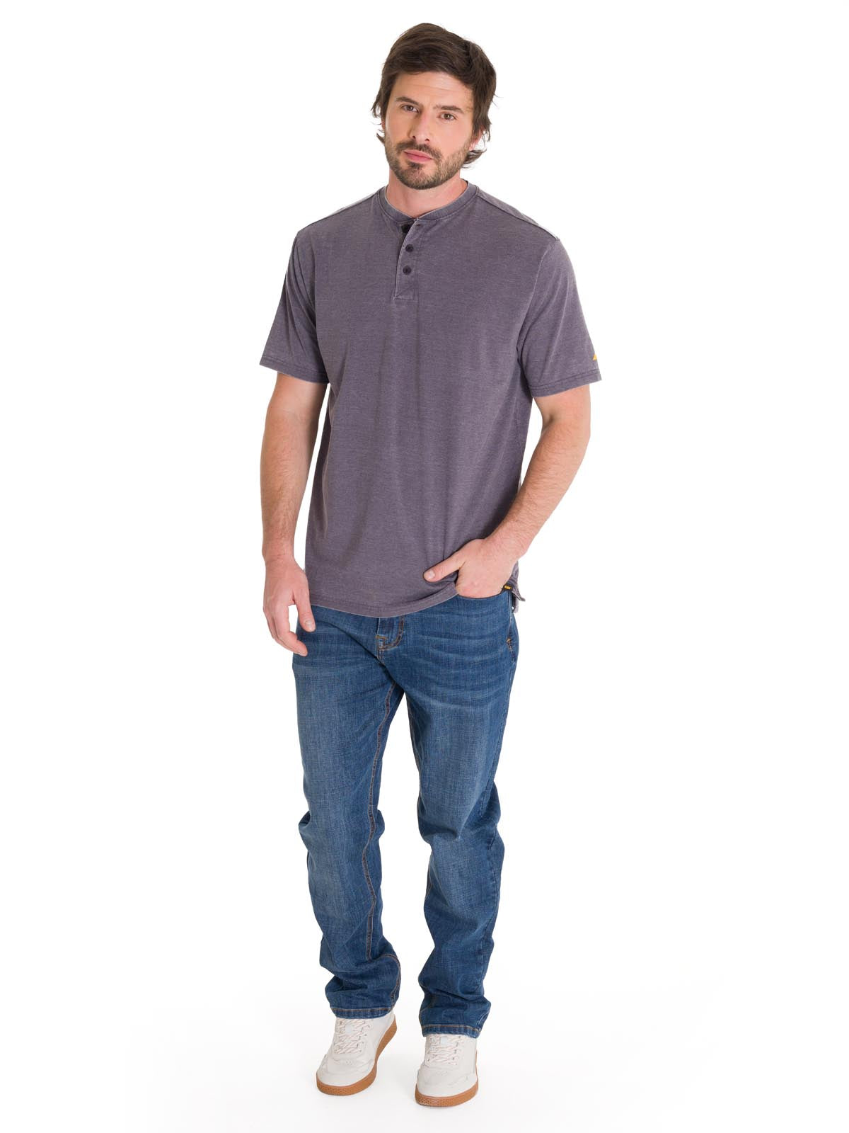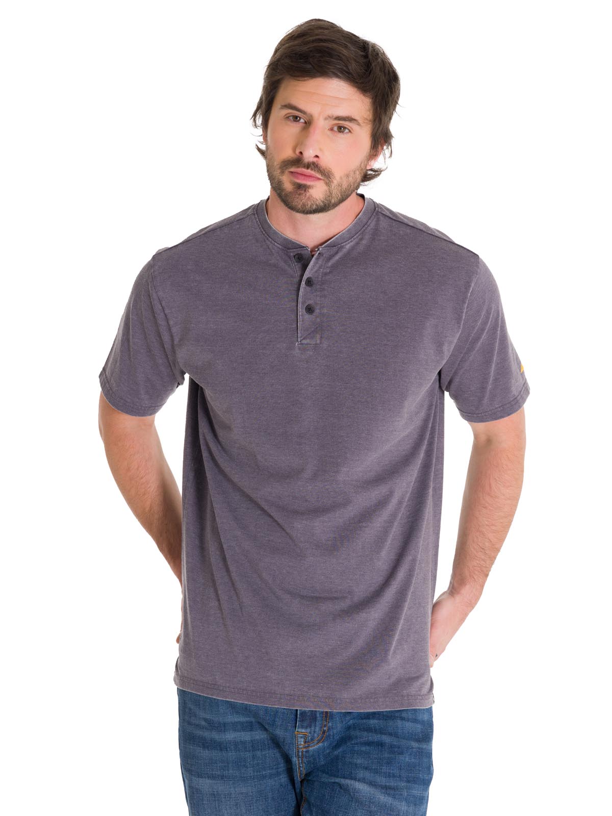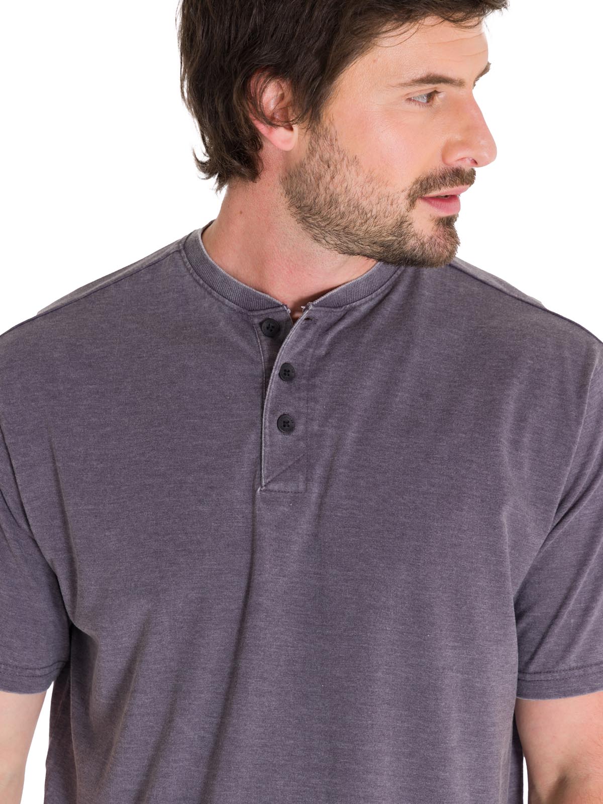 Polera Manga Corta Hombre Burnout S/S Henley Grafito Cat