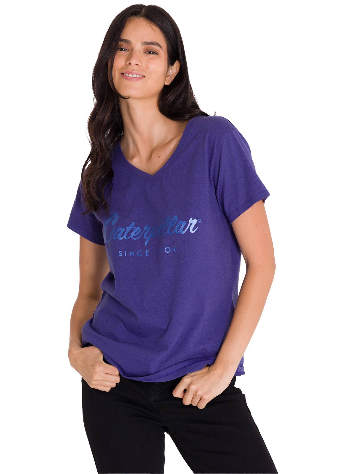 Polera Manga Corta Cuello V Mujer CAT METALLIC SCRIPT V-NECK Indigo Cat