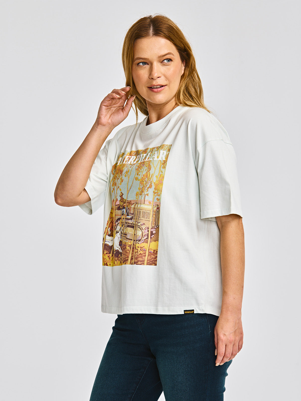 Polera Manga corta Casual Mujer BOXY HEAVYWEIGHT GRAPHIC TEE 2 Celeste CAT